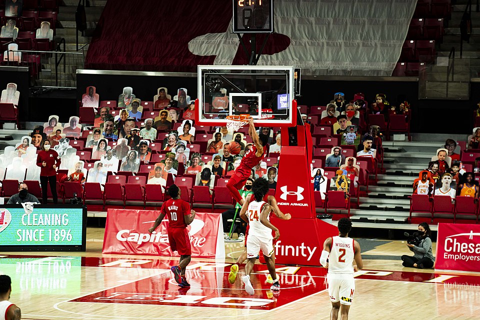(בתמונה: משחק מכללות בעונת 2020/2021. ביציע יש דמוי של קהל באמצעות תמונות אוהדים)